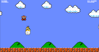 Camina por el suelo con Rigidbody2D dinámico. Se acerca a Mario más rápido que el fondo. Si hay un hueco, cae solo.