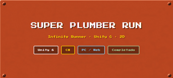 Super Plumber Run es un infinite runner 2D desarrollado completamente en Unity 6. El fontanero corre solo — tú decides cuándo saltar. Esquiva tuberías, aplasta Spinys y esquiva a Lakitu mientras el mundo se acelera y la puntuación sube.